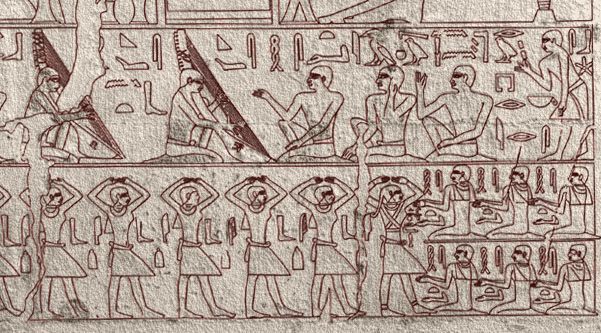 | This detail shows female dancers , male harpists and